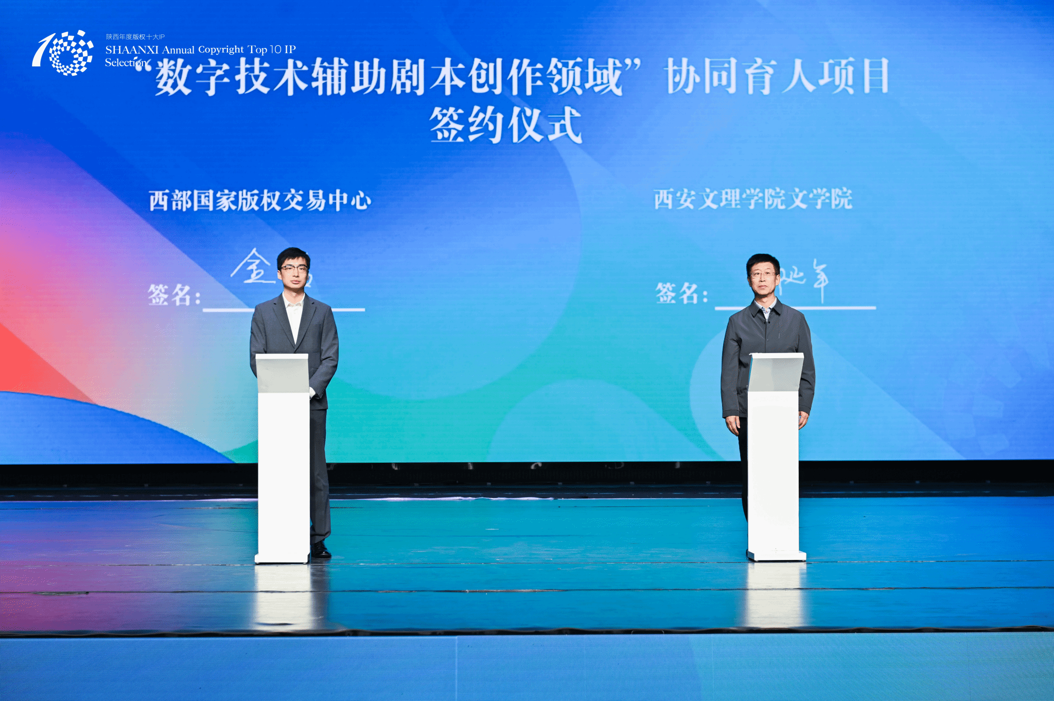 9月23日,文学院受邀参加“2025陕西年度版权十大IP评选”颁奖活动。本次活动由陕西省版权局指导,陕西省版权协会与陕文投集团等单位共同承办。活动现场,文学院与陕文投西部国家版权交易中心正式签署了《“数字技术辅助剧本创作领域”协同育人项目》合作协议。院长郝延军、戏剧影视文学系主任李悦、骨干教师马珂参加。近年来,文学院持续深化戏剧影视人才培养,累计培养短剧创作人才200余名。此次签约标志着校企协同育人迈出实质性步伐,...