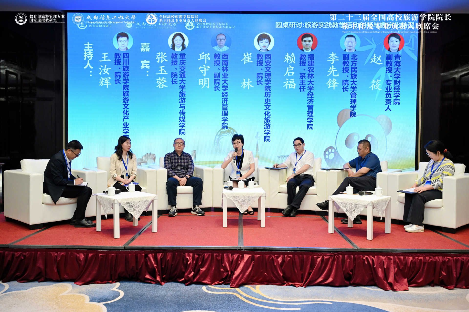 会议围绕全方位创新助推旅游教育强国建设主题,聚焦教育强国建设规划纲要指导下国家一流旅游专业群建设、新文科背景下旅游专业综合改革与人才培养模式创新等热点议题。崔林教授参加“旅游实践教学活动创新与数字化转型”圆桌论坛,介绍了我校及专业办学成果。