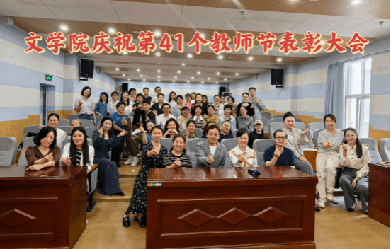 9月10日下午,文学院召开第41个教师节表彰大会。党总支书记朱芳芳主持,全体教职工参加。会上,学生排演诗朗诵、手语合唱等节目感师恩、送祝福;学院新增设“文育奖”“文承奖”“文启奖”表彰校院两级先进教师,不断增强教师教育教学及科研创新的蓄航力;青年教师代表杜近都发言,展现了青年教师的热情与担当。郝延军向全院教职工致以节日的问候,并寄语全体教师诗礼传文脉,新枝更著花。