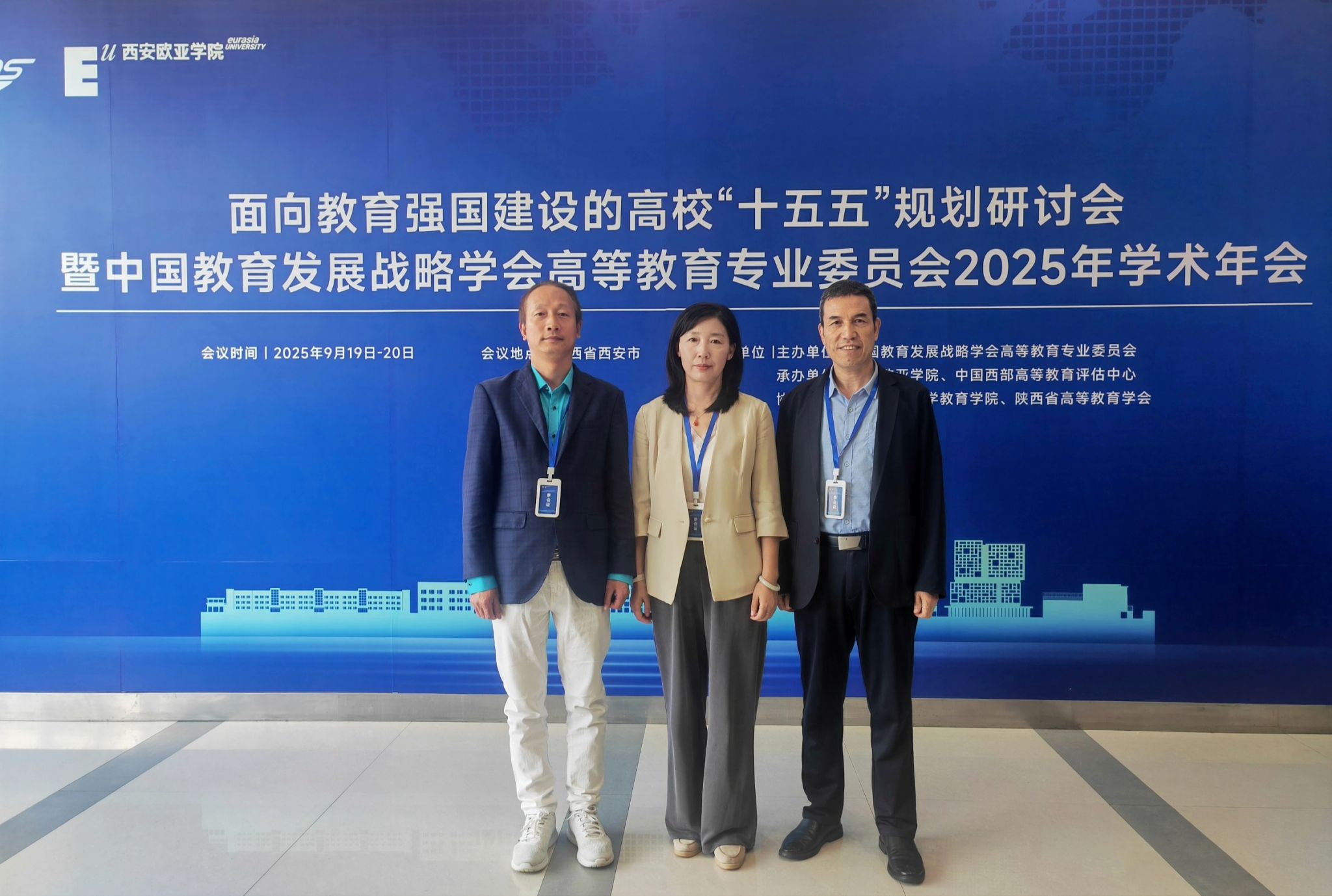 9月19日至20日,由中国教育发展战略学会高等教育专业委员会和中国西部高等教育评估中心举办的“面向教育强国建设的高校“十五五”规划研讨会暨中国教育发展战略学会高等教育专业委员会2025年学术年会”在西安欧亚学院举办。来自北京大学、中国人民大学、西安交通大学、陕西科技大学、东莞理工学院等高校200余名专家学者参会。我校发展规划处处长安振学、评估与质量监控中心主任王晓翌、副主任任宏江参加了会议。