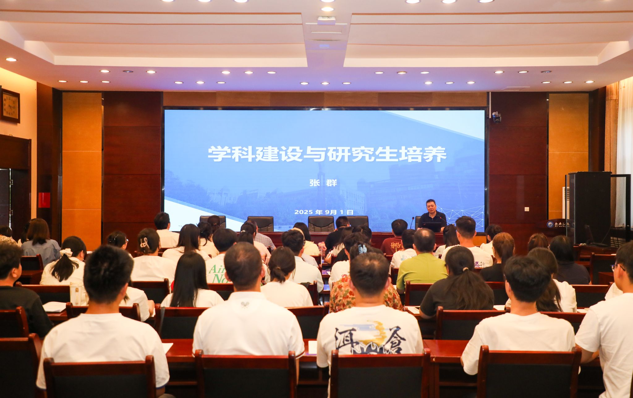 张群教授做了《学科建设与研究生培养》的专题讲座。从国家和省内学科发展情况、学科概念与内涵、西安文理学院学科建设情况、学科建设与研究生教育关系等四个方面深入阐述,让在场师生深受启发。