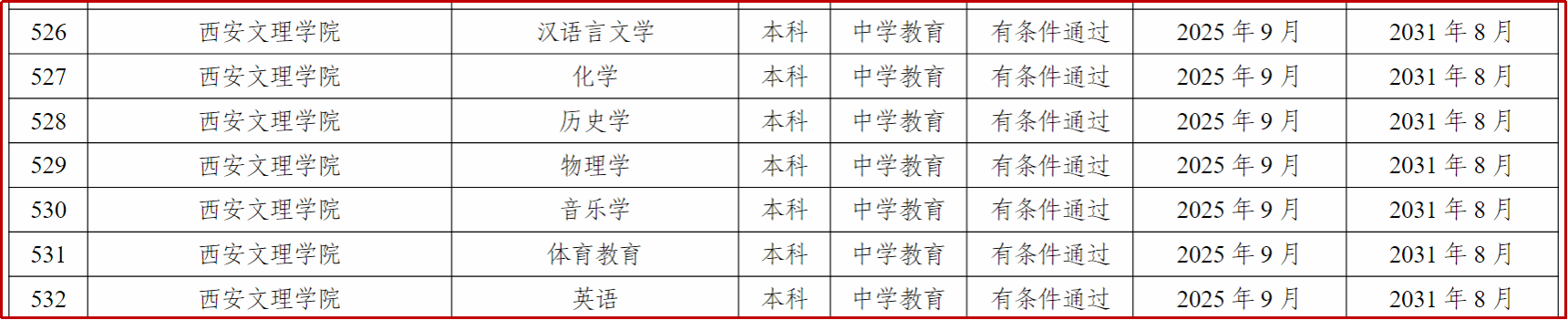 近日,教育部办公厅发布了《教育部办公厅关于公布 2025 年通过普通高等学校师范类专业认证专业名单及中期审核专业名单的通知》(教师厅函〔2025〕18号),我校汉语言文学、化学、历史学、物理学、音乐学、体育教育、英语七个专业正式通过师范类专业二级认证,认证结论有效期六年。